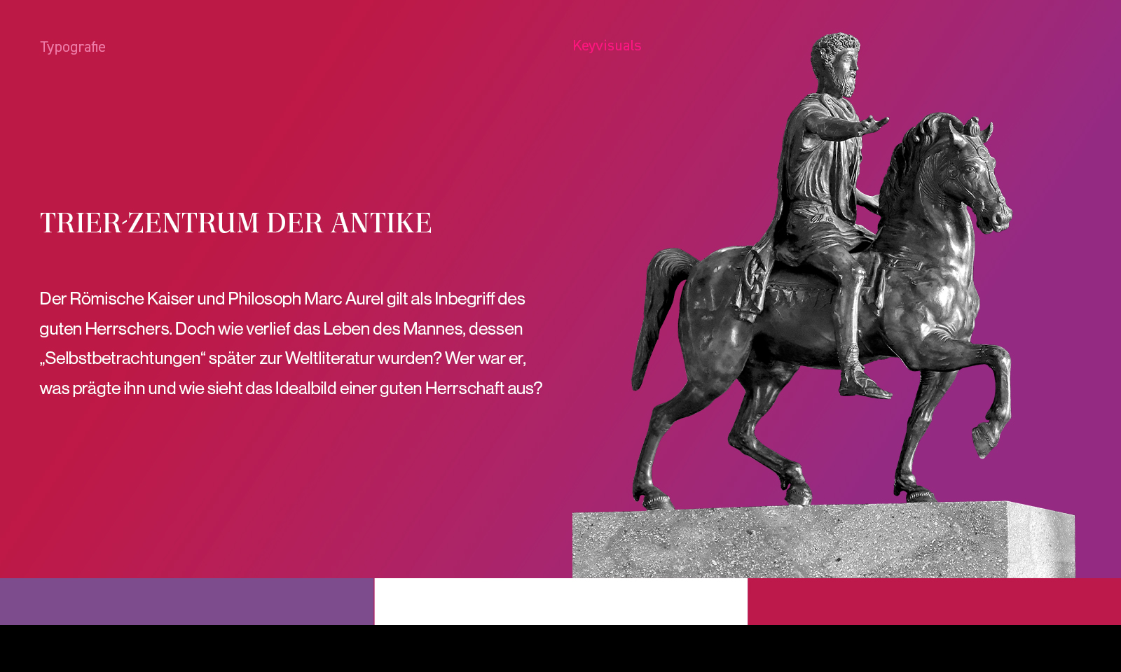 Anlässlich der großen Trierer Landesausstellung 2025 wurde propeller mit der Corporate Website "Marc Aurel" beauftragt. Die Konzeption und technische Umsetzung erfolgte in enger Zusammenarbeit mit dem Rheinischen Landesmuseum und dem Stadtmuseum Trier.